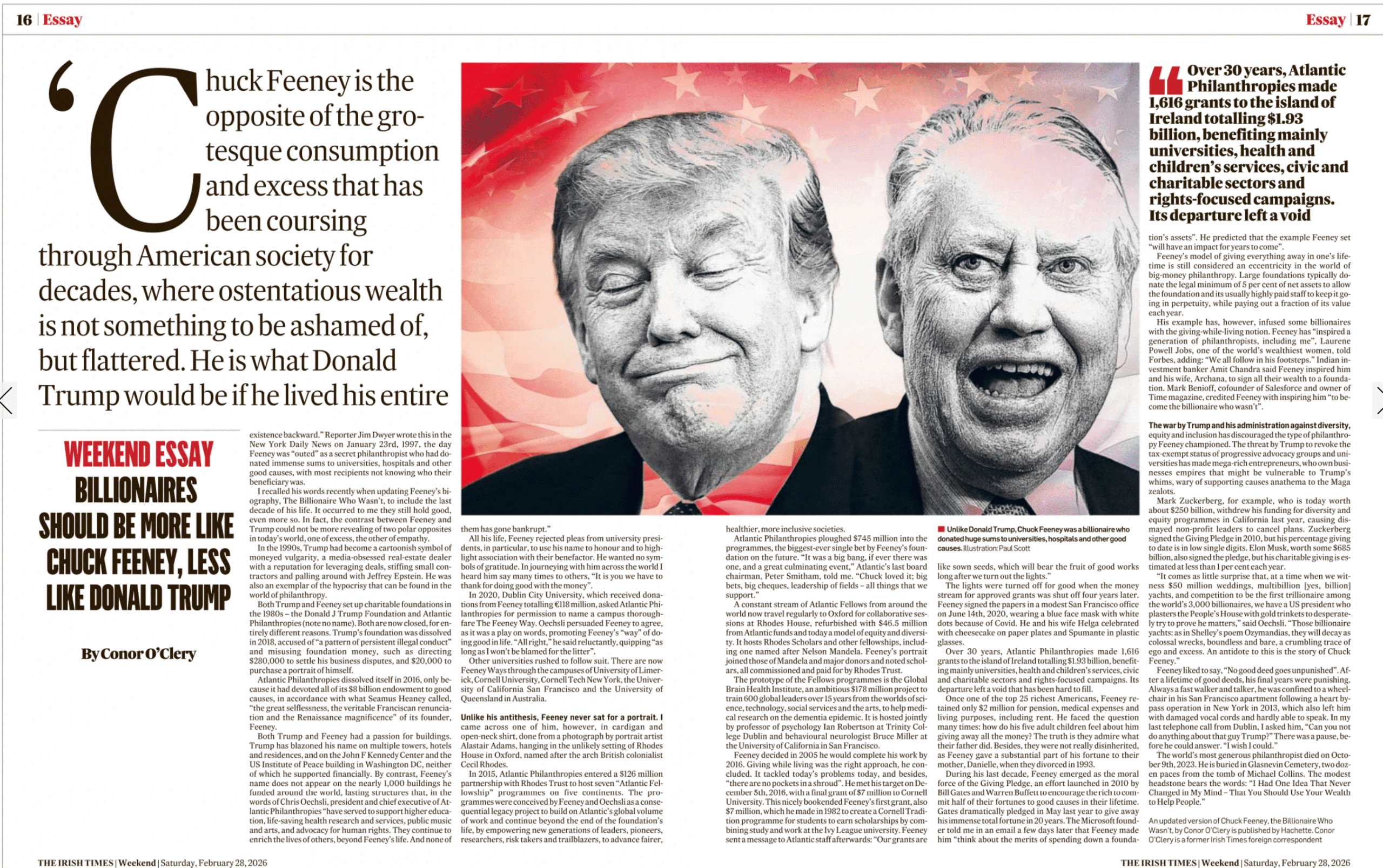 Chuck Feeney, the billionaire who gave Ireland $1.93bn, was the opposite of Trump