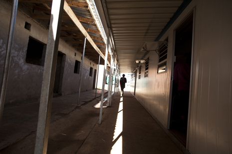 Photo: Prefab building stands next to incomplete classroom at Nyangilizwe