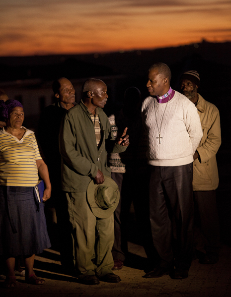Photo: Archbishop Thabo Makgoba sits inside a mud classroom at Samson